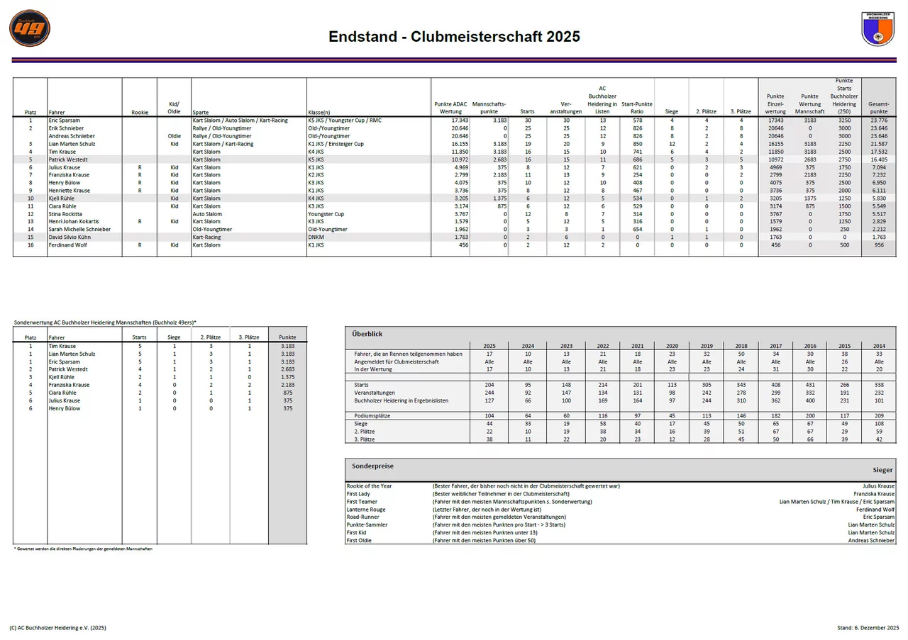 Clubmeisterschaft 2025 - Einzelergebnisse