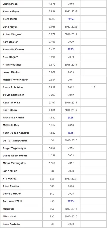 Hansa teil. In der nachfolgende Liste sind alle Fahrer