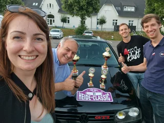 Auch bei der 5. Oldtimerveranstaltung in diesem Jahr konnten sich Andreas und Erik ganz vorn platzieren. Am Sonntag (16.6.) starteten Andreas und Erik bei der 48. Neumünster Classic und errangen einen weiteren Klassensieg mit ihrem VW Golf VR6 aus dem Baujahr 1992. Start und Ziel war der Tierpark in Neumünster und die Strecke führte über 140 km durch die landschaftlich tolle Seenlandschaft im Dreieck Neumünster - Bordesholm - Plön. Bei einer fehlerfreien Fahrt, kam es letztlich auf die 5 Wertungsprüfungen an. 1,8 Sekunden Vorsprung holten die beiden den Klassensieg mit 8 Teilnehmern und lagen 0,24 Sekunden hinter dem Gesamtsieger, was Platz 2. von insgesamt 32 Teilnehmern bedeutete.