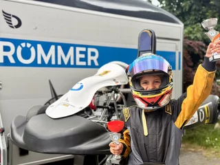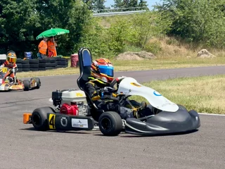 Am 3. Mai 2025 war es soweit. Lians erster Tag mit Rundstreckenrennen des Rookie Einsteiger Cups war da. Lian hatte davor schon in Fassberg, Lüneburg und Belleben auf Rundstrecken neben der Slalommeisterschaft gelegentlich geübt. Lian war voller Vorfreude auf sein erstes Rennen. Aber auch die Aufregung machte sich breit, je näher der Tag kam. Die ersten Trainings und das Qualifying wurden mit Freude am Kartsport gefahren und das Setup des Karts wurde gefunden. Die Starts der beiden ersten Rennen blieben unfallfrei und gingen fehlerfrei zu Ende. Lian holte sich jeweils den 3. Platz. Ein toller Start für ein erstes Rundstreckenrennen!