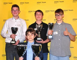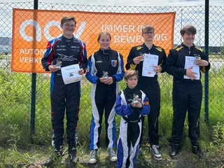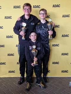 Patrik Westedt (hi.re.) hat in der Klasse K5 den 1. Platz im ADAC Hansa Kartslalom Pokal belegt. Mit 6 Siegen und 3 weiteren Podiumsplatzierungen ist er überlegen Meister geworden.